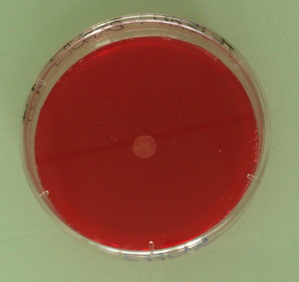 Ci-contre, nous pouvons observer deux souches de bactéries avec, disposé en leur centre, un échantillon d'antibiotique qui est le même pour les deux souches. On remarque que l'antibiotique est efficace pour la souche A contrairement à la souche B où le diamètre d'inhibition est nul.